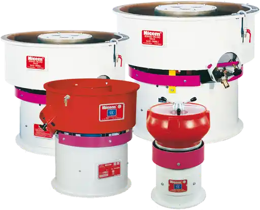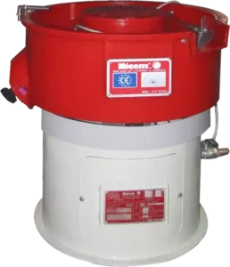 Equipada com moto-vibrador de pesos excêntricos ajustáveis, permite adaptar a vibração conforme o tipo de peça e acabamento desejado. O sistema inclui ainda canal de lavagem e enxágue das peças e torneira para descarga de água, garantindo maior limpeza e facilidade de manutenção.